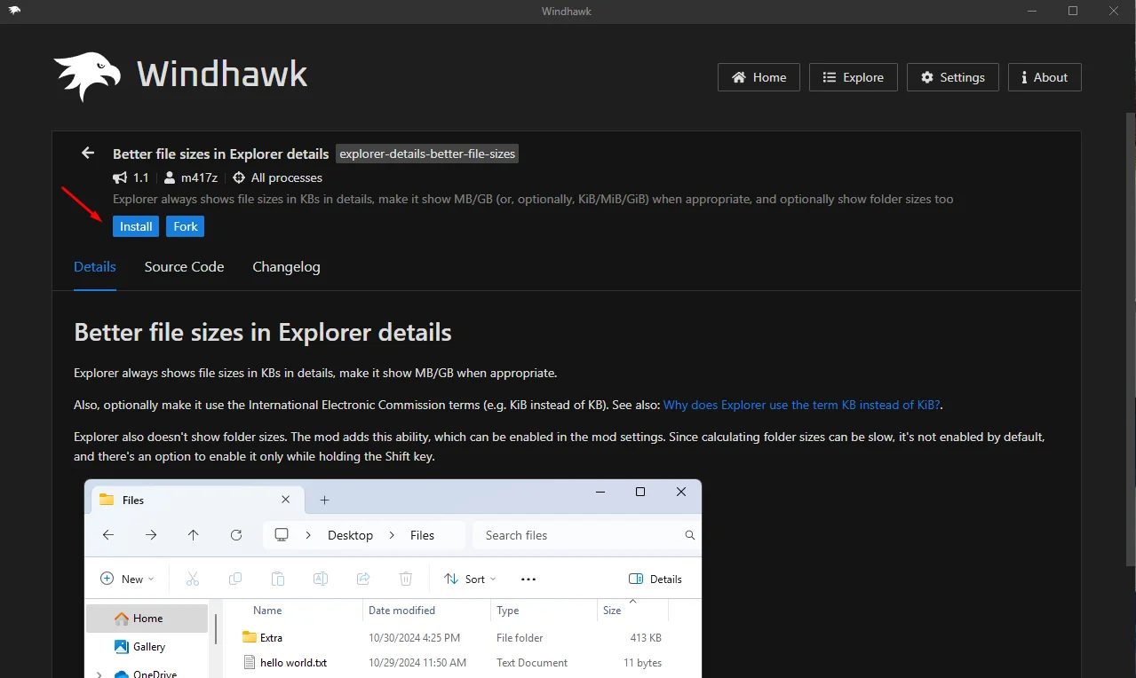Možete da podesite da File Explorer prikazuje veličine fascikle tako što ćete preuzeti Windhawk mod. Ako niste upoznati sa Windhawk-om, to je spremište različitih Windows modova koji mogu da dopune iskustvo sa mnogo traženim funkcijama.