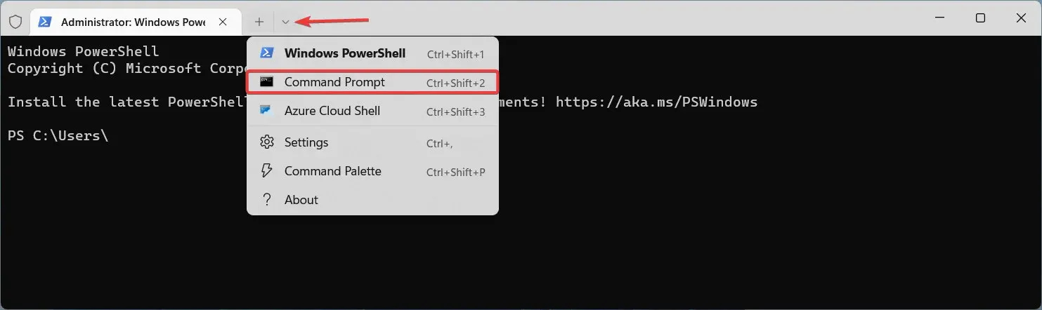 - Prebacite Windows terminal na profil komandne linije pomoću Ctrl + Shift + 2.